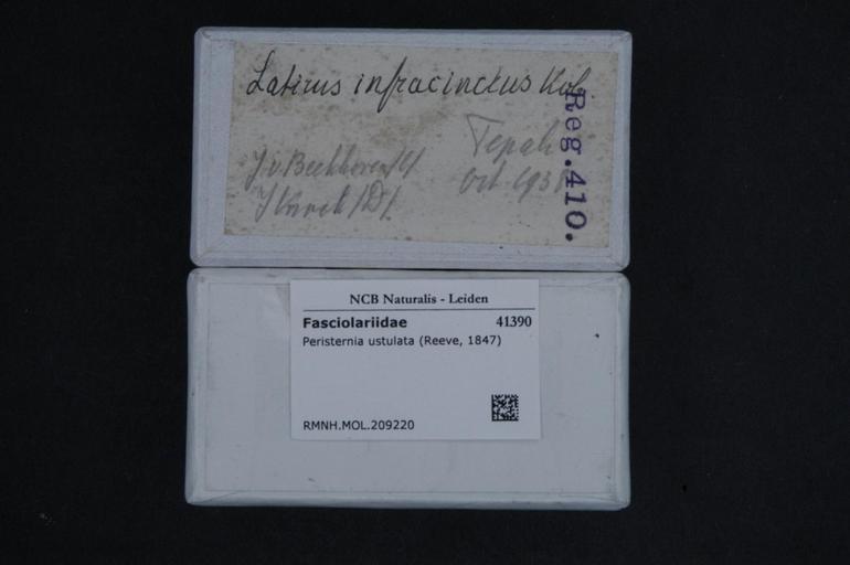 Keywords: Naturalis Biodiversity Center - RMNH.MOL.209220 1 - Peristernia ustulata (Reeve, 1847) - Fasciolariidae - Mollusc shell.jpeg artwork Dimensions artwork Document type Fasciolariidae subfamily Peristerniinae Peristernia Individual count Infraspecific epithet Infraspecific rank Institution Naturalis Kind of unit artwork Kind of unit specimen shell Life stage Medium artwork Nomenclatural code Source institute Rijksmuseum van Natuurlijke Historie Leiden Scale the width of the text on the species/QR-code label is 38 mm Occurrence ID page Other fields Other versions artwork Permission license Naturalis donation CC-0 Mollusca Publication location Scientific name Peristernia ustulata Reeve 1847 Scientific name authorship Reeve 1847 Source url http //bioportal naturalis nl Specific epithet ustulata State or province Subject keywords artwork Subject keywords publication Title artwork Title publication Type status Uploaded with GWToolset Naturalis_Biodiversity_Center_-_RMNH MOL 209220_1_-_Peristernia_ustulata_ Reeve _1847 _-_Fasciolariidae_-_Mollusc_shell http //medialib naturalis nl/file/id/RMNH MOL 209220_1/format/large Media donated by Naturalis Biodiversity Center Molluscs at Naturalis from the Rijksmuseum van Natuurlijke Historie Peristernia ustulata Peristernia