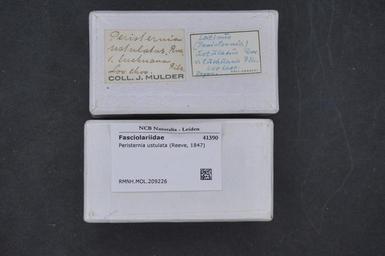 Keywords: Naturalis Biodiversity Center - RMNH.MOL.209226 1 - Peristernia ustulata (Reeve, 1847) - Fasciolariidae - Mollusc shell.jpeg artwork Dimensions artwork Document type Fasciolariidae subfamily Peristerniinae Peristernia Individual count Infraspecific epithet Infraspecific rank Institution Naturalis Kind of unit artwork Kind of unit specimen shell Life stage Medium artwork Nomenclatural code Source institute Rijksmuseum van Natuurlijke Historie Leiden Scale the width of the text on the species/QR-code label is 38 mm Occurrence ID page Other fields Other versions artwork Permission license Naturalis donation CC-0 Mollusca Publication location Scientific name Peristernia ustulata Reeve 1847 Scientific name authorship Reeve 1847 Source url http //bioportal naturalis nl Specific epithet ustulata State or province Subject keywords artwork Subject keywords publication Title artwork Title publication Type status Uploaded with GWToolset Naturalis_Biodiversity_Center_-_RMNH MOL 209226_1_-_Peristernia_ustulata_ Reeve _1847 _-_Fasciolariidae_-_Mollusc_shell http //medialib naturalis nl/file/id/RMNH MOL 209226_1/format/large Media donated by Naturalis Biodiversity Center Molluscs at Naturalis from the Rijksmuseum van Natuurlijke Historie Peristernia ustulata Peristernia