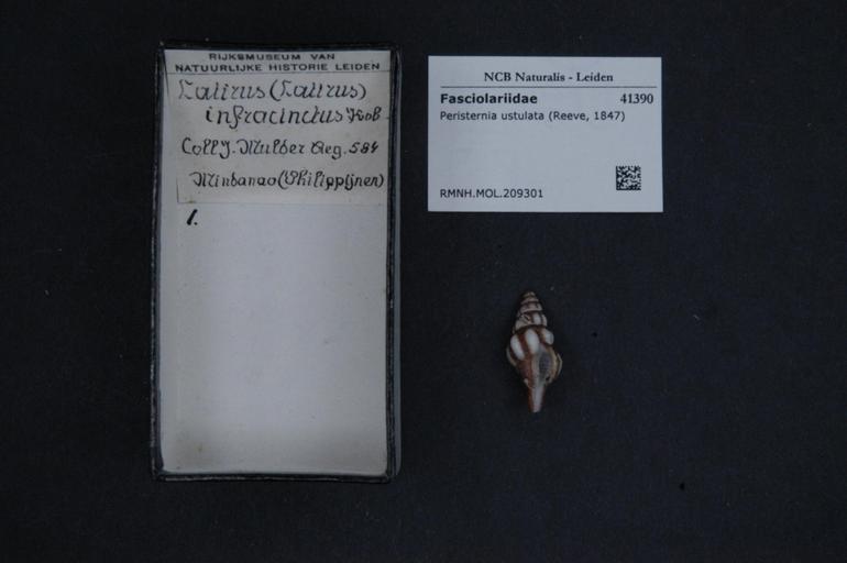 Keywords: Naturalis Biodiversity Center - RMNH.MOL.209301 - Peristernia ustulata (Reeve, 1847) - Fasciolariidae - Mollusc shell.jpeg artwork Dimensions artwork Document type Fasciolariidae subfamily Peristerniinae Peristernia Individual count Infraspecific epithet Infraspecific rank Institution Naturalis Kind of unit artwork Kind of unit specimen shell Life stage Medium artwork Nomenclatural code Source institute Rijksmuseum van Natuurlijke Historie Leiden Scale the width of the text on the species/QR-code label is 38 mm Occurrence ID page Other fields Other versions artwork Permission license Naturalis donation CC-0 Mollusca Publication location Scientific name Peristernia ustulata Reeve 1847 Scientific name authorship Reeve 1847 Source url http //bioportal naturalis nl Specific epithet ustulata State or province Subject keywords artwork Subject keywords publication Title artwork Title publication Type status Uploaded with GWToolset Naturalis_Biodiversity_Center_-_RMNH MOL 209301_-_Peristernia_ustulata_ Reeve _1847 _-_Fasciolariidae_-_Mollusc_shell http //medialib naturalis nl/file/id/RMNH MOL 209301/format/large Media donated by Naturalis Biodiversity Center Molluscs at Naturalis from the Rijksmuseum van Natuurlijke Historie Peristernia ustulata Peristernia