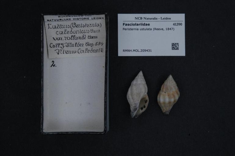 | Keywords: Naturalis Biodiversity Center - RMNH.MOL.209431 - Peristernia ustulata (Reeve, 1847) - Fasciolariidae - Mollusc shell.jpeg artwork Dimensions artwork Document type Fasciolariidae subfamily Peristerniinae Peristernia Individual count Infraspecific epithet Infraspecific rank Institution Naturalis Kind of unit artwork Kind of unit specimen shell Life stage Medium artwork Nomenclatural code Source institute Rijksmuseum van Natuurlijke Historie Leiden Scale the width of the text on the species/QR-code label is 38 mm Occurrence ID page Other fields Other versions artwork Permission license Naturalis donation CC-0 Mollusca Publication location Scientific name Peristernia ustulata Reeve 1847 Scientific name authorship Reeve 1847 Source url http //bioportal naturalis nl Specific epithet ustulata State or province Subject keywords artwork Subject keywords publication Title artwork Title publication Type status Uploaded with GWToolset Naturalis_Biodiversity_Center_-_RMNH MOL 209431_-_Peristernia_ustulata_ Reeve _1847 _-_Fasciolariidae_-_Mollusc_shell http //medialib naturalis nl/file/id/RMNH MOL 209431/format/large Media donated by Naturalis Biodiversity Center Molluscs at Naturalis from the Rijksmuseum van Natuurlijke Historie Peristernia ustulata Peristernia |