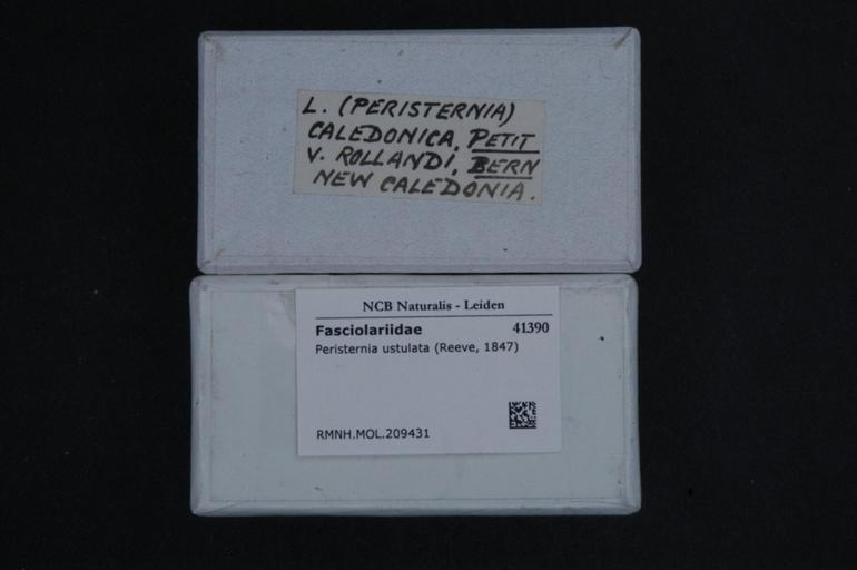 Keywords: Naturalis Biodiversity Center - RMNH.MOL.209431 1 - Peristernia ustulata (Reeve, 1847) - Fasciolariidae - Mollusc shell.jpeg artwork Dimensions artwork Document type Fasciolariidae subfamily Peristerniinae Peristernia Individual count Infraspecific epithet Infraspecific rank Institution Naturalis Kind of unit artwork Kind of unit specimen shell Life stage Medium artwork Nomenclatural code Source institute Rijksmuseum van Natuurlijke Historie Leiden Scale the width of the text on the species/QR-code label is 38 mm Occurrence ID page Other fields Other versions artwork Permission license Naturalis donation CC-0 Mollusca Publication location Scientific name Peristernia ustulata Reeve 1847 Scientific name authorship Reeve 1847 Source url http //bioportal naturalis nl Specific epithet ustulata State or province Subject keywords artwork Subject keywords publication Title artwork Title publication Type status Uploaded with GWToolset Naturalis_Biodiversity_Center_-_RMNH MOL 209431_1_-_Peristernia_ustulata_ Reeve _1847 _-_Fasciolariidae_-_Mollusc_shell http //medialib naturalis nl/file/id/RMNH MOL 209431_1/format/large Media donated by Naturalis Biodiversity Center Molluscs at Naturalis from the Rijksmuseum van Natuurlijke Historie Peristernia ustulata Peristernia