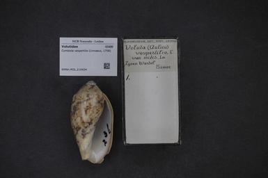 | Keywords: Naturalis Biodiversity Center - RMNH.MOL.210434 - Cymbiola vespertilio Linnaeus, 1758 - Volutidae - Mollusc shell.jpeg artwork Dimensions artwork Document type Volutidae Cymbiola Individual count Infraspecific epithet Infraspecific rank Institution Naturalis Kind of unit artwork Kind of unit specimen shell Life stage Medium artwork Nomenclatural code Source institute Rijksmuseum van Natuurlijke Historie Leiden Scale the width of the text on the species/QR-code label is 38 mm Occurrence ID page Neogastropoda Other fields Other versions artwork Permission license Naturalis donation CC-0 Mollusca Publication location Scientific name Cymbiola vespertilio Linnaeus 1758 Scientific name authorship Linnaeus 1758 Source url http //bioportal naturalis nl Specific epithet vespertilio State or province Subject keywords artwork Subject keywords publication Title artwork Title publication Type status Uploaded with GWToolset Naturalis_Biodiversity_Center_-_RMNH MOL 210434_-_Cymbiola_vespertilio_Linnaeus _1758_-_Volutidae_-_Mollusc_shell http //medialib naturalis nl/file/id/RMNH MOL 210434/format/large Media donated by Naturalis Biodiversity Center Molluscs at Naturalis from the Rijksmuseum van Natuurlijke Historie Cymbiola vespertilio Cymbiola |