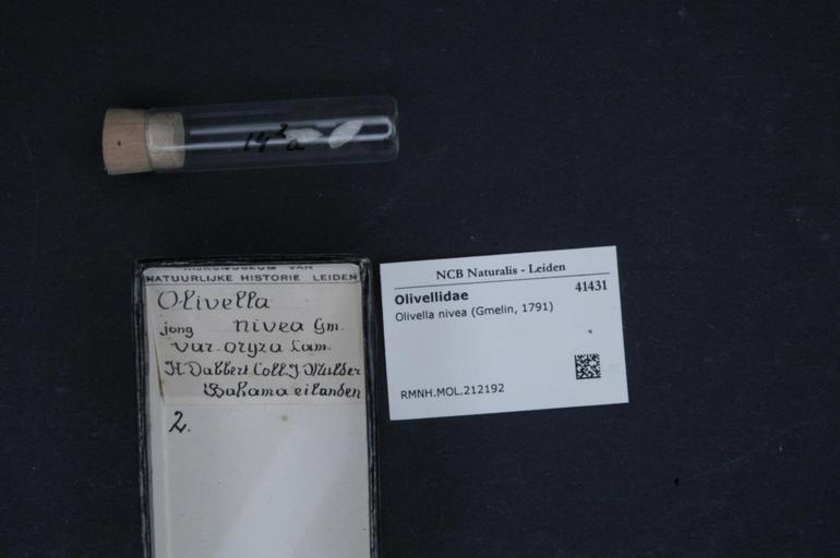 | Keywords: Naturalis Biodiversity Center - RMNH.MOL.212192 - Olivella nivea (Gmelin, 1791) - Olivellidae - Mollusc shell.jpeg artwork Dimensions artwork Document type Olivellidae Olivella Individual count Infraspecific epithet Infraspecific rank Institution Naturalis Kind of unit artwork Kind of unit specimen shell Life stage Medium artwork Nomenclatural code Source institute Rijksmuseum van Natuurlijke Historie Leiden Scale the width of the text on the species/QR-code label is 38 mm Occurrence ID page Other fields Other versions artwork Permission license Naturalis donation CC-0 Mollusca Publication location Scientific name Olivella nivea Gmelin 1791 Scientific name authorship Gmelin 1791 Source url http //bioportal naturalis nl Specific epithet nivea State or province Subject keywords artwork Subject keywords publication Title artwork Title publication Type status Uploaded with GWToolset Naturalis_Biodiversity_Center_-_RMNH MOL 212192_-_Olivella_nivea_ Gmelin _1791 _-_Olivellidae_-_Mollusc_shell http //medialib naturalis nl/file/id/RMNH MOL 212192/format/large Media donated by Naturalis Biodiversity Center Molluscs at Naturalis from the Rijksmuseum van Natuurlijke Historie Olivella nivea Olivella |
