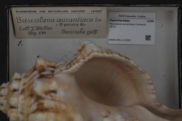 | Keywords: Naturalis Biodiversity Center - RMNH.MOL.213552 - Pleuroploca aurantiaca (Lamarck, 1816) - Fasciolariidae - Mollusc shell.jpeg artwork Dimensions artwork Document type Fasciolariidae subfamily Fasciolariinae Pleuroploca Individual count Infraspecific epithet Infraspecific rank Institution Naturalis Kind of unit artwork Kind of unit specimen shell Life stage Medium artwork Nomenclatural code Source institute Rijksmuseum van Natuurlijke Historie Leiden Scale the width of the text on the species/QR-code label is 38 mm Occurrence ID page Other fields Other versions artwork Permission license Naturalis donation CC-0 Mollusca Publication location Scientific name Pleuroploca aurantiaca Lamarck 1816 Scientific name authorship Lamarck 1816 Source url http //bioportal naturalis nl Specific epithet aurantiaca State or province Subject keywords artwork Subject keywords publication Title artwork Title publication Type status Uploaded with GWToolset Naturalis_Biodiversity_Center_-_RMNH MOL 213552_-_Pleuroploca_aurantiaca_ Lamarck _1816 _-_Fasciolariidae_-_Mollusc_shell http //medialib naturalis nl/file/id/RMNH MOL 213552/format/large Media donated by Naturalis Biodiversity Center Molluscs at Naturalis from the Rijksmuseum van Natuurlijke Historie Pleuroploca aurantiaca Pleuroploca |