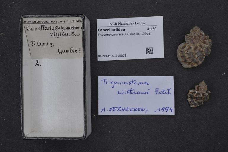 | Keywords: Naturalis Biodiversity Center - RMNH.MOL.218078 - Trigonostoma scala (Gmelin, 1791) - Cancellariidae - Mollusc shell.jpeg artwork Dimensions artwork Document type Cancellariidae subfamily Cancellariinae Trigonostoma Individual count Infraspecific epithet Infraspecific rank Institution Naturalis Kind of unit artwork Kind of unit specimen shell Life stage Medium artwork Nomenclatural code Source institute Rijksmuseum van Natuurlijke Historie Leiden Scale the width of the text on the species/QR-code label is 38 mm Occurrence ID page Other fields Other versions artwork Permission license Naturalis donation CC-0 Mollusca Publication location Scientific name Trigonostoma scala Gmelin 1791 Scientific name authorship Gmelin 1791 Source url http //bioportal naturalis nl Specific epithet scala State or province Subject keywords artwork Subject keywords publication Title artwork Title publication Type status Uploaded with GWToolset Naturalis_Biodiversity_Center_-_RMNH MOL 218078_-_Trigonostoma_scala_ Gmelin _1791 _-_Cancellariidae_-_Mollusc_shell http //medialib naturalis nl/file/id/RMNH MOL 218078/format/large Molluscs at Naturalis from the Rijksmuseum van Natuurlijke Historie Media donated by Naturalis Biodiversity Center Trigonostoma scala Trigonostoma |