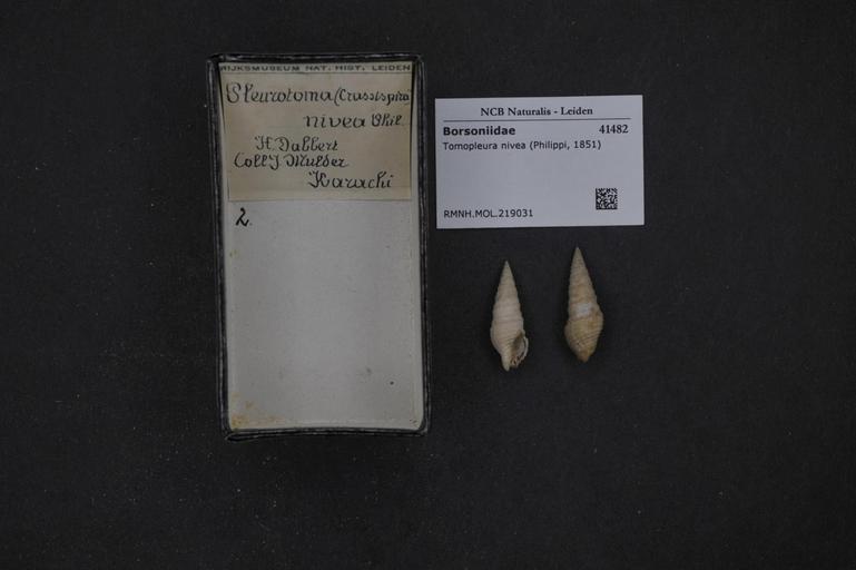 | Keywords: Naturalis Biodiversity Center - RMNH.MOL.219031 - Tomopleura nivea (Philippi, 1851) - Borsoniidae - Mollusc shell.jpeg artwork Dimensions artwork Document type Borsoniidae Tomopleura Individual count Infraspecific epithet Infraspecific rank Institution Naturalis Kind of unit artwork Kind of unit specimen shell Life stage Medium artwork Nomenclatural code Source institute Rijksmuseum van Natuurlijke Historie Leiden Scale the width of the text on the species/QR-code label is 38 mm Occurrence ID page Other fields Other versions artwork Permission license Naturalis donation CC-0 Mollusca Publication location Scientific name Tomopleura nivea Philippi 1851 Scientific name authorship Philippi 1851 Source url http //bioportal naturalis nl Specific epithet nivea State or province Subject keywords artwork Subject keywords publication Title artwork Title publication Type status Uploaded with GWToolset Naturalis_Biodiversity_Center_-_RMNH MOL 219031_-_Tomopleura_nivea_ Philippi _1851 _-_Borsoniidae_-_Mollusc_shell http //medialib naturalis nl/file/id/RMNH MOL 219031/format/large Molluscs at Naturalis from the Rijksmuseum van Natuurlijke Historie Media donated by Naturalis Biodiversity Center Tomopleura nivea Tomopleura |