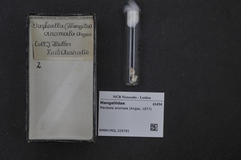 | Keywords: Naturalis Biodiversity Center - RMNH.MOL.225781 - Macteola anomala (Angas, 1877) - Mangeliidae - Mollusc shell.jpeg artwork Dimensions artwork Document type Mangeliidae Macteola Individual count Infraspecific epithet Infraspecific rank Institution Naturalis Kind of unit artwork Kind of unit specimen shell Life stage Medium artwork Nomenclatural code Source institute Rijksmuseum van Natuurlijke Historie Leiden Scale the width of the text on the species/QR-code label is 38 mm Occurrence ID page Other fields Other versions artwork Permission license Naturalis donation CC-0 Mollusca Publication location Scientific name Macteola anomala Angas 1877 Scientific name authorship Angas 1877 Source url http //bioportal naturalis nl Specific epithet anomala State or province Subject keywords artwork Subject keywords publication Title artwork Title publication Type status Uploaded with GWToolset Naturalis_Biodiversity_Center_-_RMNH MOL 225781_-_Macteola_anomala_ Angas _1877 _-_Mangeliidae_-_Mollusc_shell http //medialib naturalis nl/file/id/RMNH MOL 225781/format/large Molluscs at Naturalis from the Rijksmuseum van Natuurlijke Historie Media donated by Naturalis Biodiversity Center Macteola anomala Macteola |