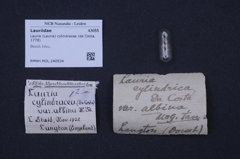 | Keywords: Naturalis Biodiversity Center - RMNH.MOL.240934 - Lauria (Lauria) cylindracea (Da Costa, 1778) - Lauriidae - Mollusc shell.jpeg artwork Dimensions artwork Document type Lauriidae Lauria Individual count Infraspecific epithet Infraspecific rank Institution Naturalis Kind of unit artwork Kind of unit specimen shell Life stage British Isles Medium artwork Nomenclatural code Source institute Rijksmuseum van Natuurlijke Historie Leiden Scale the width of the text on the species/QR-code label is 38 mm Occurrence ID page Other fields Other versions artwork Permission license Naturalis donation CC-0 Mollusca Publication location Scientific name Lauria Lauria cylindracea Da Costa 1778 Scientific name authorship Da Costa 1778 Source url http //bioportal naturalis nl Specific epithet cylindracea State or province Subject keywords artwork Subject keywords publication Title artwork Title publication Type status Uploaded with GWToolset Naturalis_Biodiversity_Center_-_RMNH MOL 240934_-_Lauria_ Lauria _cylindracea_ Da_Costa _1778 _-_Lauriidae_-_Mollusc_shell http //medialib naturalis nl/file/id/RMNH MOL 240934/format/large Molluscs at Naturalis from the Rijksmuseum van Natuurlijke Historie Media donated by Naturalis Biodiversity Center Lauria cylindracea Lauria |