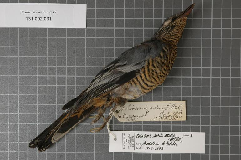 | Keywords: Naturalis Biodiversity Center - RMNH.AVES.123711 1 - Coracina morio morio (Muller, 1843) - Campephagidae - bird skin specimen.jpeg artwork Dimensions artwork Document type Campephagidae Coracina Individual count 1 Infraspecific epithet morio Infraspecific rank Institution Naturalis Kind of unit artwork Kind of unit specimen skin Life stage Indonesia N Celebes Modelido Medium artwork Nomenclatural code Occurrence ID page Other fields Other versions artwork Permission license Naturalis donation CC-0 Publication location Scientific name Coracina morio morio Muller 1843 Scientific name authorship Muller 1843 female Source url http //bioportal naturalis nl Specific epithet morio State or province N Celebes Subject keywords artwork Subject keywords publication Title artwork Title publication Type status Uploaded with GWToolset Naturalis_Biodiversity_Center_-_RMNH AVES 123711_1_-_Coracina_morio_morio_ Muller _1843 _-_Campephagidae_-_bird_skin_specimen http //medialib naturalis nl/file/id/RMNH AVES 123711_1/format/large Media donated by Naturalis Biodiversity Center Songbird specimens at Naturalis Biodiversity Center Coracina morio morio |