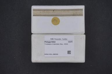 Keywords: Naturalis Biodiversity Center - RMNH.MOL.286569 1 - Triodopsis tridentata (Say, 1816) - Polygyridae - Mollusc shell.jpeg artwork Dimensions artwork Document type Polygyridae subfamily Triodopsinae Triodopsis Individual count Infraspecific epithet Infraspecific rank Institution Naturalis Kind of unit artwork Kind of unit specimen shell Life stage Medium artwork Nomenclatural code Source institute Rijksmuseum van Natuurlijke Historie Leiden Scale the width of the text on the species/QR-code label is 38 mm Occurrence ID page Other fields Other versions artwork Permission license Naturalis donation CC-0 Mollusca Publication location Scientific name Triodopsis tridentata Say 1816 Scientific name authorship Say 1816 Source url http //bioportal naturalis nl Specific epithet tridentata State or province Subject keywords artwork Subject keywords publication Title artwork Title publication Type status Uploaded with GWToolset Naturalis_Biodiversity_Center_-_RMNH MOL 286569_1_-_Triodopsis_tridentata_ Say _1816 _-_Polygyridae_-_Mollusc_shell http //medialib naturalis nl/file/id/RMNH MOL 286569_1/format/large Molluscs at Naturalis from the Rijksmuseum van Natuurlijke Historie Media donated by Naturalis Biodiversity Center Triodopsis tridentata Triodopsis
