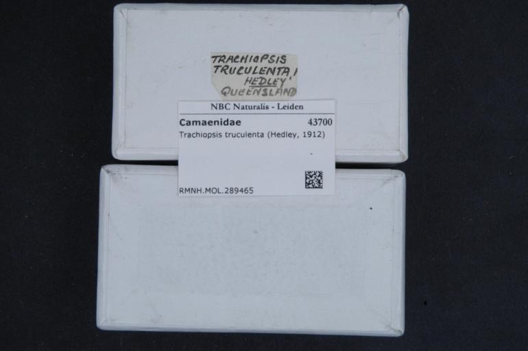 | Keywords: Naturalis Biodiversity Center - RMNH.MOL.289465 1 - Trachiopsis truculenta (Hedley, 1912) - Camaenidae - Mollusc shell.jpeg artwork Dimensions artwork Document type Camaenidae subfamily Camaeninae Trachiopsis Individual count Infraspecific epithet Infraspecific rank Institution Naturalis Kind of unit artwork Kind of unit specimen shell Life stage Medium artwork Nomenclatural code Source institute Rijksmuseum van Natuurlijke Historie Leiden Scale the width of the text on the species/QR-code label is 38 mm Occurrence ID page Other fields Other versions artwork Permission license Naturalis donation CC-0 Mollusca Publication location Scientific name Trachiopsis truculenta Hedley 1912 Scientific name authorship Hedley 1912 Source url http //bioportal naturalis nl Specific epithet truculenta State or province Subject keywords artwork Subject keywords publication Title artwork Title publication Type status Uploaded with GWToolset Naturalis_Biodiversity_Center_-_RMNH MOL 289465_1_-_Trachiopsis_truculenta_ Hedley _1912 _-_Camaenidae_-_Mollusc_shell http //medialib naturalis nl/file/id/RMNH MOL 289465_1/format/large Media donated by Naturalis Biodiversity Center Molluscs at Naturalis from the Rijksmuseum van Natuurlijke Historie Trachiopsis truculenta Trachiopsis |
