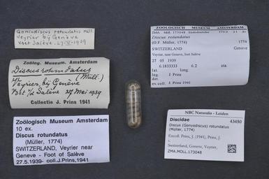 | Keywords: Naturalis Biodiversity Center - ZMA.MOLL.173048 - Discus (Gonyodiscus) rotundatus (Müller, 1774) - Discidae - Mollusc shell.jpeg artwork Dimensions artwork Document type Discidae Discus Individual count Infraspecific epithet Infraspecific rank Institution Naturalis Kind of unit artwork Kind of unit specimen shell Life stage Switzerland Geneve Veyrier near Geneve foot Salève; lat 46 1833333 lon 6 2; 27-v-1939 Medium artwork Nomenclatural code Collection remarks Moll Scale the width of the text on the species/QR-code label is 38 mm Occurrence ID page Other fields Other versions artwork Permission license Naturalis donation CC-0 Mollusca Publication location Scientific name Discus Gonyodiscus rotundatus Müller 1774 Scientific name authorship Müller 1774 Source url http //bioportal naturalis nl Specific epithet rotundatus State or province Geneve Subject keywords artwork Subject keywords publication Title artwork Title publication Type status Uploaded with GWToolset Naturalis_Biodiversity_Center_-_ZMA MOLL 173048_-_Discus_ Gonyodiscus _rotundatus_ Müller _1774 _-_Discidae_-_Mollusc_shell http //medialib naturalis nl/file/id/ZMA MOLL 173048/format/large Media donated by Naturalis Biodiversity Center Molluscs at Naturalis from the Zoölogisch Museum Amsterdam Discus rotundatus Discus |