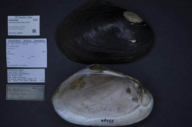 | Keywords: Naturalis Biodiversity Center - ZMA.MOLL.209654 - Potamilus alatus (Say, 1817) - Unionidae - Mollusc shell.jpeg artwork Dimensions artwork Document type Unionidae subfamily Ambleminae Potamilus Individual count Infraspecific epithet Infraspecific rank Institution Naturalis Kind of unit artwork Kind of unit specimen shell Life stage Usa Ohio Fox River Medium artwork Nomenclatural code Scale the width of the text on the species/QR-code label is 38 mm Occurrence ID page Other fields Other versions artwork Permission license Naturalis donation CC-0 Mollusca Publication location Scientific name Potamilus alatus Say 1817 Scientific name authorship Say 1817 Source url http //bioportal naturalis nl Specific epithet alatus State or province Ohio Subject keywords artwork Subject keywords publication Title artwork Title publication Type status Uploaded with GWToolset Naturalis_Biodiversity_Center_-_ZMA MOLL 209654_-_Potamilus_alatus_ Say _1817 _-_Unionidae_-_Mollusc_shell http //medialib naturalis nl/file/id/ZMA MOLL 209654/format/large Media donated by Naturalis Biodiversity Center Molluscs at Naturalis from the Zoölogisch Museum Amsterdam Potamilus alatus Potamilus |