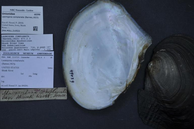 | Keywords: Naturalis Biodiversity Center - ZMA.MOLL.210522 - Lasmigona complanata (Barnes, 1823) - Unionidae - Mollusc shell.jpeg artwork Dimensions artwork Document type Unionidae subfamily Anodontinae Lasmigona Individual count Infraspecific epithet Infraspecific rank Institution Naturalis Kind of unit artwork Kind of unit specimen shell Life stage United States Iowa Skunk River Medium artwork Nomenclatural code Scale the width of the text on the species/QR-code label is 38 mm Occurrence ID page Other fields Other versions artwork Permission license Naturalis donation CC-0 Mollusca Publication location Scientific name Lasmigona complanata Barnes 1823 Scientific name authorship Barnes 1823 Source url http //bioportal naturalis nl Specific epithet complanata State or province Iowa Subject keywords artwork Subject keywords publication Title artwork Title publication Type status Uploaded with GWToolset Naturalis_Biodiversity_Center_-_ZMA MOLL 210522_-_Lasmigona_complanata_ Barnes _1823 _-_Unionidae_-_Mollusc_shell http //medialib naturalis nl/file/id/ZMA MOLL 210522/format/large Media donated by Naturalis Biodiversity Center Molluscs at Naturalis from the Zoölogisch Museum Amsterdam Lasmigona complanata |