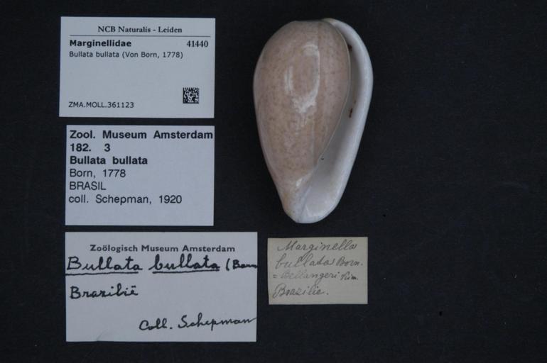 | Keywords: Naturalis Biodiversity Center - ZMA.MOLL.361123 - Bullata bullata (Von Born, 1778) - Marginellidae - Mollusc shell.jpeg artwork Dimensions artwork Document type Marginellidae Bullata Individual count Infraspecific epithet Infraspecific rank Institution Naturalis Kind of unit artwork Kind of unit specimen shell Life stage Medium artwork Nomenclatural code Source institute Zoölogisch Museum Amsterdam Scale the width of the text on the species/QR-code label is 38 mm Occurrence ID page Neogastropoda Other fields Other versions artwork Permission license Naturalis donation CC-0 Mollusca Publication location Scientific name Bullata bullata Von Born 1778 Scientific name authorship Von Born 1778 Source url http //bioportal naturalis nl Specific epithet bullata State or province Subject keywords artwork Subject keywords publication Title artwork Title publication Type status Uploaded with GWToolset Naturalis_Biodiversity_Center_-_ZMA MOLL 361123_-_Bullata_bullata_ Von_Born _1778 _-_Marginellidae_-_Mollusc_shell http //medialib naturalis nl/file/id/ZMA MOLL 361123/format/large Media donated by Naturalis Biodiversity Center Molluscs at Naturalis from the Zoölogisch Museum Amsterdam Bullata bullata Bullata |