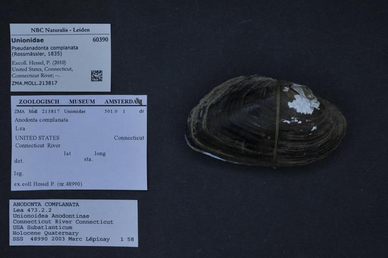 | Keywords: Naturalis Biodiversity Center - ZMA.MOLL.213817 - Pseudanadonta complanata (Rossmässler, 1835) - Unionidae - Mollusc shell.jpeg artwork Dimensions artwork Document type Unionidae Pseudanadonta Individual count Infraspecific epithet Infraspecific rank Institution Naturalis Kind of unit artwork Kind of unit specimen shell Life stage United States Connecticut Connecticut River Medium artwork Nomenclatural code Scale the width of the text on the species/QR-code label is 38 mm Occurrence ID page Other fields Other versions artwork Permission license Naturalis donation CC-0 Mollusca Publication location Scientific name Pseudanadonta complanata Rossmässler 1835 Scientific name authorship Rossmässler 1835 Source url http //bioportal naturalis nl Specific epithet complanata State or province Connecticut Subject keywords artwork Subject keywords publication Title artwork Title publication Type status Uploaded with GWToolset Naturalis_Biodiversity_Center_-_ZMA MOLL 213817_-_Pseudanadonta_complanata_ Rossmässler _1835 _-_Unionidae_-_Mollusc_shell http //medialib naturalis nl/file/id/ZMA MOLL 213817/format/large Media donated by Naturalis Biodiversity Center Molluscs at Naturalis from the Zoölogisch Museum Amsterdam Pseudanadonta complanata Pseudanadonta |