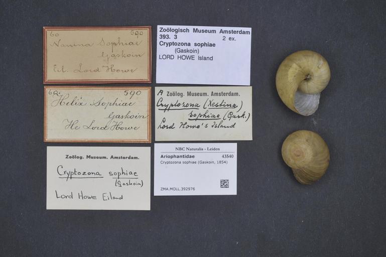 | Keywords: Naturalis Biodiversity Center - ZMA.MOLL.392976 - Cryptozona sophiae (Gaskoin, 1854) - Ariophantidae - Mollusc shell.jpeg artwork Dimensions artwork Document type Ariophantidae Cryptozona Individual count Infraspecific epithet Infraspecific rank Institution Naturalis Kind of unit artwork Kind of unit specimen shell Life stage Medium artwork Nomenclatural code Source institute Rijksmuseum van Natuurlijke Historie Leiden Scale the width of the text on the species/QR-code label is 38 mm Occurrence ID page Other fields Other versions artwork Permission license Naturalis donation CC-0 Mollusca Publication location Scientific name Cryptozona sophiae Gaskoin 1854 Scientific name authorship Gaskoin 1854 Source url http //bioportal naturalis nl Specific epithet sophiae State or province Subject keywords artwork Subject keywords publication Title artwork Title publication Type status Uploaded with GWToolset Naturalis_Biodiversity_Center_-_ZMA MOLL 392976_-_Cryptozona_sophiae_ Gaskoin _1854 _-_Ariophantidae_-_Mollusc_shell http //medialib naturalis nl/file/id/ZMA MOLL 392976/format/large Molluscs at Naturalis from the Zoölogisch Museum Amsterdam Media donated by Naturalis Biodiversity Center Cryptozona sophiae Cryptozona |