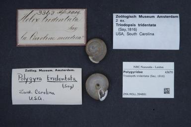 MAKE A MEME View Large Image Naturalis Biodiversity Center - ZMA.MOLL.394881 - Triodopsis tridentata (Say, 1816) - Polygyridae - Mollusc shell.jpeg artwork Dimensions artwork Document type Polygyridae subfamily Triodopsinae Triodopsis Individual count Infraspecific ...