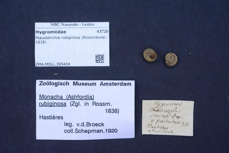 | Keywords: Naturalis Biodiversity Center - ZMA.MOLL.395434 - Pseudotrichia rubiginosa (Rossmässler, 1838) - Hygromiidae - Mollusc shell.jpeg artwork Dimensions artwork Document type Hygromiidae subfamily Hygromiinae Pseudotrichia Individual count Infraspecific epithet Infraspecific rank Institution Naturalis Kind of unit artwork Kind of unit specimen shell Life stage Medium artwork Nomenclatural code Source institute Rijksmuseum van Natuurlijke Historie Leiden Scale the width of the text on the species/QR-code label is 38 mm Occurrence ID page Other fields Other versions artwork Permission license Naturalis donation CC-0 Mollusca Publication location Scientific name Pseudotrichia rubiginosa Rossmässler 1838 Scientific name authorship Rossmässler 1838 Source url http //bioportal naturalis nl Specific epithet rubiginosa State or province Subject keywords artwork Subject keywords publication Title artwork Title publication Type status Uploaded with GWToolset Naturalis_Biodiversity_Center_-_ZMA MOLL 395434_-_Pseudotrichia_rubiginosa_ Rossmässler _1838 _-_Hygromiidae_-_Mollusc_shell http //medialib naturalis nl/file/id/ZMA MOLL 395434/format/large Molluscs at Naturalis from the Zoölogisch Museum Amsterdam Media donated by Naturalis Biodiversity Center Pseudotrichia rubiginosa Pseudotrichia |