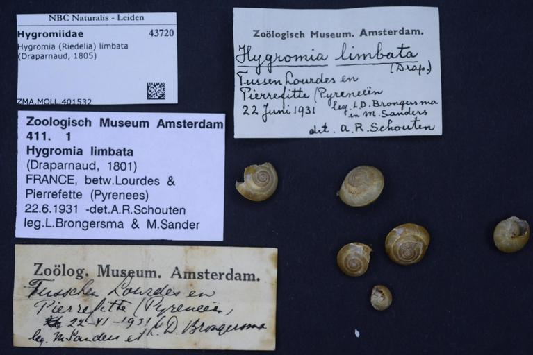 | Keywords: Naturalis Biodiversity Center - ZMA.MOLL.401532 - Hygromia (Riedelia) limbata (Draparnaud, 1805) - Hygromiidae - Mollusc shell.jpeg artwork Dimensions artwork Document type Hygromiidae subfamily Hygromiinae Hygromia Individual count Infraspecific epithet Infraspecific rank Institution Naturalis Kind of unit artwork Kind of unit specimen shell Life stage Medium artwork Nomenclatural code Source institute Rijksmuseum van Natuurlijke Historie Leiden Scale the width of the text on the species/QR-code label is 38 mm Occurrence ID page Other fields Other versions artwork Permission license Naturalis donation CC-0 Mollusca Publication location Scientific name Hygromia Riedelia limbata Draparnaud 1805 Scientific name authorship Draparnaud 1805 Source url http //bioportal naturalis nl Specific epithet limbata State or province Subject keywords artwork Subject keywords publication Title artwork Title publication Type status Uploaded with GWToolset Naturalis_Biodiversity_Center_-_ZMA MOLL 401532_-_Hygromia_ Riedelia _limbata_ Draparnaud _1805 _-_Hygromiidae_-_Mollusc_shell http //medialib naturalis nl/file/id/ZMA MOLL 401532/format/large Molluscs at Naturalis from the Zoölogisch Museum Amsterdam Media donated by Naturalis Biodiversity Center Hygromia limbata Hygromia |