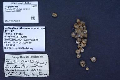 | Keywords: Naturalis Biodiversity Center - ZMA.MOLL.403625 - Trochulus (Trochulus) sericeus (Draparnaud, 1801) - Hygromiidae - Mollusc shell.jpeg artwork Dimensions artwork Document type Hygromiidae Trochulus Individual count Infraspecific epithet Infraspecific rank Institution Naturalis Kind of unit artwork Kind of unit specimen shell Life stage Medium artwork Nomenclatural code Source institute Rijksmuseum van Natuurlijke Historie Leiden Scale the width of the text on the species/QR-code label is 38 mm Occurrence ID page Other fields Other versions artwork Permission license Naturalis donation CC-0 Mollusca Publication location Scientific name Trochulus Trochulus sericeus Draparnaud 1801 Scientific name authorship Draparnaud 1801 Source url http //bioportal naturalis nl Specific epithet sericeus State or province Subject keywords artwork Subject keywords publication Title artwork Title publication Type status Uploaded with GWToolset Naturalis_Biodiversity_Center_-_ZMA MOLL 403625_-_Trochulus_ Trochulus _sericeus_ Draparnaud _1801 _-_Hygromiidae_-_Mollusc_shell http //medialib naturalis nl/file/id/ZMA MOLL 403625/format/large Molluscs at Naturalis from the Zoölogisch Museum Amsterdam Media donated by Naturalis Biodiversity Center Trochulus sericeus Trochulus |