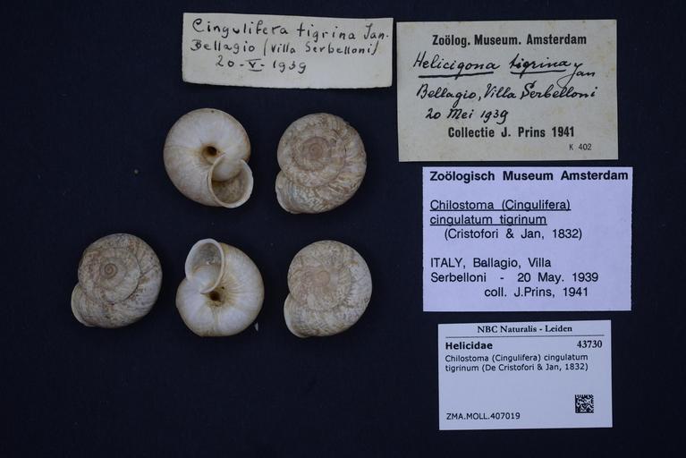 Keywords: Naturalis Biodiversity Center - ZMA.MOLL.407019 - Chilostoma (Cingulifera) cingulatum tigrinum (De Cristofori & Jan, 1832) - Helicidae - Mollusc shell.jpeg artwork Dimensions artwork Document type Helicidae subfamily Helicigoninae Chilostoma Individual count Infraspecific epithet tigrinum Infraspecific rank Institution Naturalis Kind of unit artwork Kind of unit specimen shell Life stage Medium artwork Nomenclatural code Source institute Zoölogisch Museum Amsterdam Scale the width of the text on the species/QR-code label is 38 mm Occurrence ID page Other fields Other versions artwork Permission license Naturalis donation CC-0 Mollusca Publication location Scientific name Chilostoma Cingulifera cingulatum tigrinum De Cristofori Jan 1832 Scientific name authorship De Cristofori Jan 1832 Source url http //bioportal naturalis nl Specific epithet cingulatum State or province Subject keywords artwork Subject keywords publication Title artwork Title publication Type status Uploaded with GWToolset Naturalis_Biodiversity_Center_-_ZMA MOLL 407019_-_Chilostoma_ Cingulifera _cingulatum_tigrinum_ De_Cristofori_ _Jan _1832 _-_Helicidae_-_Mollusc_shell http //medialib naturalis nl/file/id/ZMA MOLL 407019/format/large Molluscs at Naturalis from the Zoölogisch Museum Amsterdam Media donated by Naturalis Biodiversity Center Chilostoma cingulatum Chilostoma |