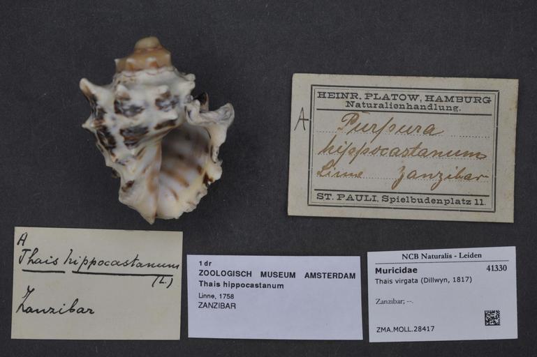 | Keywords: Naturalis Biodiversity Center - ZMA.MOLL.28417 - Thais virgata (Dillwyn, 1817) - Muricidae - Mollusc shell.jpeg artwork Dimensions artwork Document type Muricidae subfamily Rapaninae Thais Individual count Infraspecific epithet Infraspecific rank Institution Naturalis Kind of unit artwork Kind of unit specimen shell Life stage Zanzibar Medium artwork Nomenclatural code Scale the width of the text on the species/QR-code label is 38 mm Occurrence ID page Neogastropoda Other fields Other versions artwork Permission license Naturalis donation CC-0 Mollusca Publication location Scientific name Thais virgata Dillwyn 1817 Scientific name authorship Dillwyn 1817 Source url http //bioportal naturalis nl Specific epithet virgata State or province Zanzibar Subject keywords artwork Subject keywords publication Title artwork Title publication Type status Uploaded with GWToolset Naturalis_Biodiversity_Center_-_ZMA MOLL 28417_-_Thais_virgata_ Dillwyn _1817 _-_Muricidae_-_Mollusc_shell http //medialib naturalis nl/file/id/ZMA MOLL 28417/format/large Media donated by Naturalis Biodiversity Center Molluscs at Naturalis from the Zoölogisch Museum Amsterdam Thais virgata |