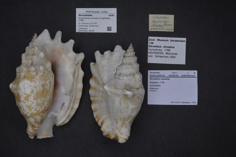 Keywords: Naturalis Biodiversity Center - ZMA.MOLL.46190 - Sinustrombus sinuatus (-Lightfoot-, 1786) - Strombidae - Mollusc shell.jpeg artwork Dimensions artwork Document type Strombidae Sinustrombus Individual count Infraspecific epithet Infraspecific rank Institution Naturalis Kind of unit artwork Kind of unit specimen shell Life stage Indonesia Moluccas Amboina Medium artwork Nomenclatural code Source institute Zoölogisch Museum Amsterdam Scale the width of the text on the species/QR-code label is 38 mm Occurrence ID page Other fields Other versions artwork Permission license Naturalis donation CC-0 Mollusca Publication location Scientific name Sinustrombus sinuatus Lightfoot 1786 Scientific name authorship Lightfoot 1786 Source url http //bioportal naturalis nl Specific epithet sinuatus State or province Moluccas Subject keywords artwork Subject keywords publication Title artwork Title publication Type status Uploaded with GWToolset Naturalis_Biodiversity_Center_-_ZMA MOLL 46190_-_Sinustrombus_sinuatus_ Lightfoot _1786 _-_Strombidae_-_Mollusc_shell http //medialib naturalis nl/file/id/ZMA MOLL 46190/format/large Molluscs at Naturalis from the Zoölogisch Museum Amsterdam Media donated by Naturalis Biodiversity Center Sinustrombus sinuatus Sinustrombus |