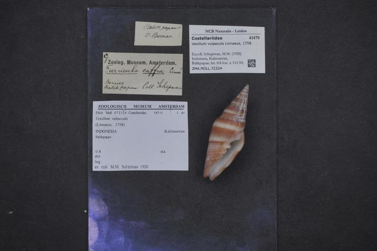 Keywords: Naturalis Biodiversity Center - ZMA.MOLL.72324 - Vexillum vulpecula (Linnaeus, 1758) - Costellariidae - Mollusc shell.jpeg artwork Dimensions artwork Document type Costellariidae Vexillum Individual count Infraspecific epithet Infraspecific rank Institution Naturalis Kind of unit artwork Kind of unit specimen shell Life stage Indonesia Kalimantan Balikpapan; lat 0 8 lon 111 55 Medium artwork Nomenclatural code Collection remarks Moll Source institute Zoölogisch Museum Amsterdam Scale the width of the text on the species/QR-code label is 38 mm Occurrence ID page Neogastropoda Other fields Other versions artwork Permission license Naturalis donation CC-0 Mollusca Publication location Scientific name Vexillum vulpecula Linnaeus 1758 Scientific name authorship Linnaeus 1758 Source url http //bioportal naturalis nl Specific epithet vulpecula State or province Kalimantan Subject keywords artwork Subject keywords publication Title artwork Title publication Type status Uploaded with GWToolset Naturalis_Biodiversity_Center_-_ZMA MOLL 72324_-_Vexillum_vulpecula_ Linnaeus _1758 _-_Costellariidae_-_Mollusc_shell http //medialib naturalis nl/file/id/ZMA MOLL 72324/format/large Molluscs at Naturalis from the Zoölogisch Museum Amsterdam Media donated by Naturalis Biodiversity Center Vexillum vulpecula Vexillum |