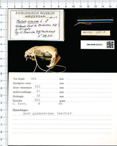 Keywords: Naturalis Biodiversity Center - ZMA.MAM.22316.a lat - Mustela erminea Linnaeus - skull.jpeg artwork Dimensions artwork Document type Mustela Individual count 1 Infraspecific epithet Infraspecific rank Institution Naturalis Kind of unit artwork Kind of unit specimen skull Life stage Juvenile Netherlands Noord Holland Ankeveen Hollands End Medium artwork Nomenclatural code Occurrence ID page Other fields Other versions artwork Permission license Naturalis donation CC-0 Publication location Scientific name Mustela erminea Linnaeus Scientific name authorship Linnaeus male Source url http //bioportal naturalis nl Specific epithet erminea State or province Noord Holland Subject keywords artwork Subject keywords publication Title artwork Title publication Type status Uploaded with GWToolset Naturalis_Biodiversity_Center_-_ZMA MAM 22316 a_lat_-_Mustela_erminea_Linnaeus_-_skull http //medialib naturalis nl/file/id/ZMA MAM 22316 a_lat/format/large Mammals at Naturalis from the Zoölogisch Museum Amsterdam Media donated by Naturalis Biodiversity Center Mustela erminea Mustela |