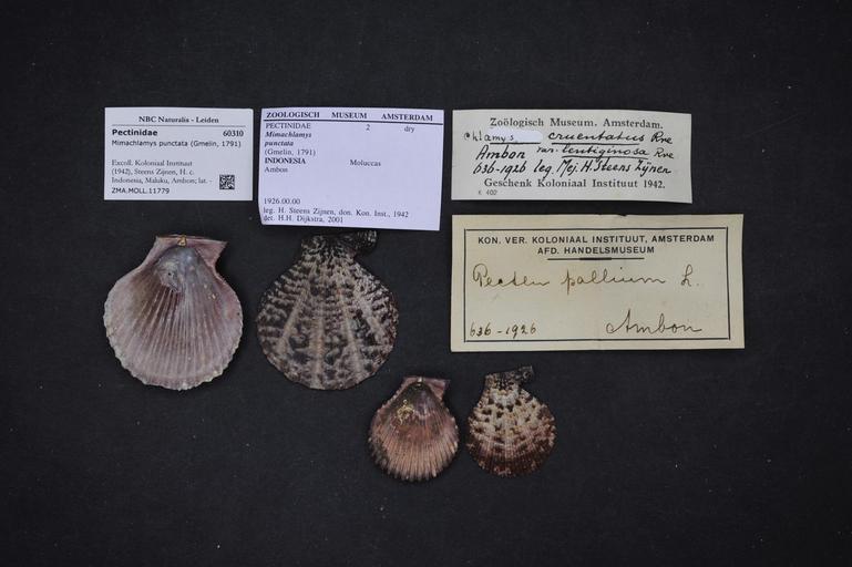 | Keywords: Naturalis Biodiversity Center - ZMA.MOLL.11779 - Mimachlamys punctata (Gmelin, 1791) - Pectinidae - Mollusc shell.jpeg artwork Dimensions artwork Document type Pectinidae subfamily Chlamydinae Mimachlamys Dijkstra H H Individual count Infraspecific epithet Infraspecific rank Institution Naturalis Kind of unit artwork Kind of unit specimen shell Life stage Indonesia Maluku Ambon; lat -3 683333 lon 128 1667; 1926 Medium artwork Nomenclatural code Collection remarks Moll Scale the width of the text on the species/QR-code label is 38 mm Occurrence ID page Pectinoida Other fields Other versions artwork Permission license Naturalis donation CC-0 Mollusca Publication location Scientific name Mimachlamys punctata Gmelin 1791 Scientific name authorship Gmelin 1791 Source url http //bioportal naturalis nl Specific epithet punctata State or province Maluku Moluccas Subject keywords artwork Subject keywords publication Title artwork Title publication Type status Uploaded with GWToolset Naturalis_Biodiversity_Center_-_ZMA MOLL 11779_-_Mimachlamys_punctata_ Gmelin _1791 _-_Pectinidae_-_Mollusc_shell http //medialib naturalis nl/file/id/ZMA MOLL 11779/format/large Media donated by Naturalis Biodiversity Center Molluscs at Naturalis from the Zoölogisch Museum Amsterdam Mimachlamys punctata |