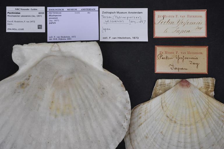 | Keywords: Naturalis Biodiversity Center - ZMA.MOLL.12185 - Mizuhopecten yessoensis (Jay, 1857) - Pectinidae - Mollusc shell.jpeg artwork Dimensions artwork Document type Pectinidae Mizuhopecten Dijkstra H H Individual count Infraspecific epithet Infraspecific rank Institution Naturalis Kind of unit artwork Kind of unit specimen shell Life stage Japan Medium artwork Nomenclatural code Collection remarks Moll Scale the width of the text on the species/QR-code label is 38 mm Occurrence ID page Pectinoida Other fields Other versions artwork Permission license Naturalis donation CC-0 Mollusca Publication location Scientific name Mizuhopecten yessoensis Jay 1857 Scientific name authorship Jay 1857 Source url http //bioportal naturalis nl Specific epithet yessoensis State or province Subject keywords artwork Subject keywords publication Title artwork Title publication Type status Uploaded with GWToolset Naturalis_Biodiversity_Center_-_ZMA MOLL 12185_-_Mizuhopecten_yessoensis_ Jay _1857 _-_Pectinidae_-_Mollusc_shell http //medialib naturalis nl/file/id/ZMA MOLL 12185/format/large Media donated by Naturalis Biodiversity Center Molluscs at Naturalis from the Zoölogisch Museum Amsterdam Mizuhopecten yessoensis Mizuhopecten |