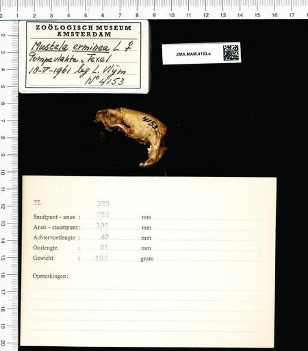 Keywords: Naturalis Biodiversity Center - ZMA.MAM.4153.a lat - Mustela erminea Linnaeus - skull.jpeg artwork Dimensions artwork Document type Mustela Individual count 1 Infraspecific epithet Infraspecific rank Institution Naturalis Kind of unit artwork Kind of unit specimen skull Life stage Netherlands Noord Holland Texel Medium artwork Nomenclatural code Occurrence ID page Other fields Other versions artwork Permission license Naturalis donation CC-0 Publication location Scientific name Mustela erminea Linnaeus Scientific name authorship Linnaeus female Source url http //bioportal naturalis nl Specific epithet erminea State or province Noord Holland Subject keywords artwork Subject keywords publication Title artwork Title publication Type status Uploaded with GWToolset Naturalis_Biodiversity_Center_-_ZMA MAM 4153 a_lat_-_Mustela_erminea_Linnaeus_-_skull http //medialib naturalis nl/file/id/ZMA MAM 4153 a_lat/format/large Mammals at Naturalis from the Zoölogisch Museum Amsterdam Media donated by Naturalis Biodiversity Center Mustela erminea Mustela |