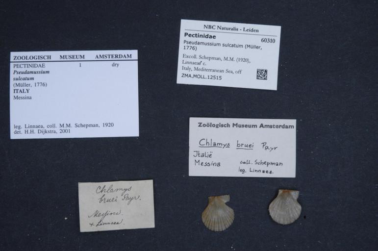 | Keywords: Naturalis Biodiversity Center - ZMA.MOLL.12515 1 - Pseudamussium sulcatum (Müller, 1776) - Pectinidae - Mollusc shell.jpeg artwork Dimensions artwork Document type Pectinidae subfamily Pectininae Pseudamussium Dijkstra H H Individual count Infraspecific epithet Infraspecific rank Institution Naturalis Kind of unit artwork Kind of unit specimen shell Life stage Italy Mediterranean Sea off Messina; lat 38 2119 lon 15 5837 Medium artwork Nomenclatural code Collection remarks Moll Scale the width of the text on the species/QR-code label is 38 mm Occurrence ID page Pectinoida Other fields Other versions artwork Permission license Naturalis donation CC-0 Mollusca Publication location Scientific name Pseudamussium sulcatum Müller 1776 Scientific name authorship Müller 1776 Source url http //bioportal naturalis nl Specific epithet sulcatum State or province Subject keywords artwork Subject keywords publication Title artwork Title publication Type status Uploaded with GWToolset Naturalis_Biodiversity_Center_-_ZMA MOLL 12515_1_-_Pseudamussium_sulcatum_ Müller _1776 _-_Pectinidae_-_Mollusc_shell http //medialib naturalis nl/file/id/ZMA MOLL 12515_1/format/large Media donated by Naturalis Biodiversity Center Molluscs at Naturalis from the Zoölogisch Museum Amsterdam Pseudamussium sulcatum Pseudamussium |