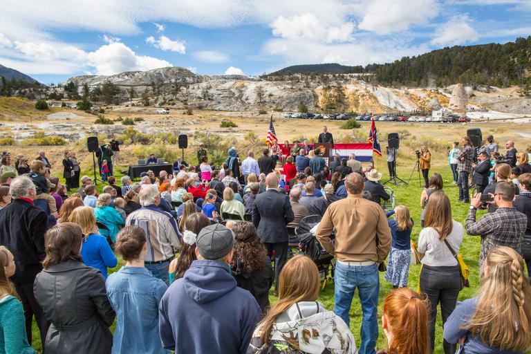 Keywords: 2016 naturalization ceremony The Honorable Mark L. Carman presides over a naturalization ceremony in Mammoth Hot Springs. NPS/Neal Herbert. The Honorable Mark L. Carman presides over a naturalization ceremony in Mammoth Hot Springs. NPS/Neal Herbert.