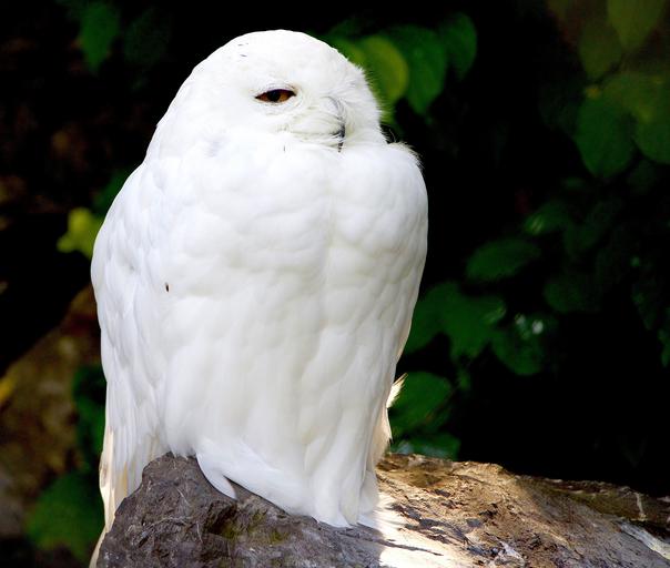 Keywords: nature animals birds raptor snowy owl sitting dormant