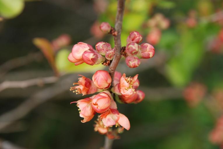 Keywords: nature branch spring blossom red pink flower button