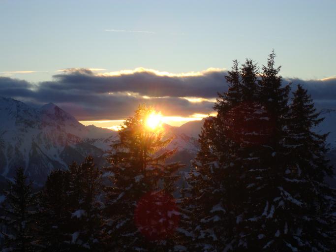 Keywords: nature clouds sunshine tree winter sunset wintry snow