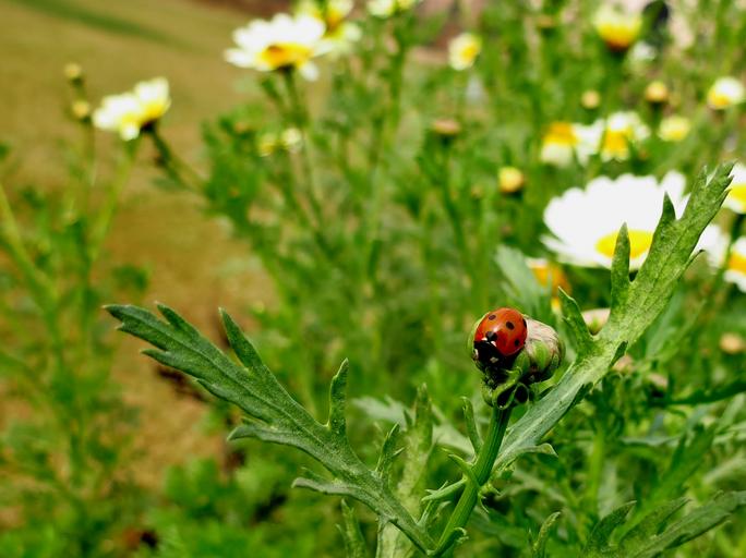 Keywords: nature garden insect ladybug flowerbed daisy flowers