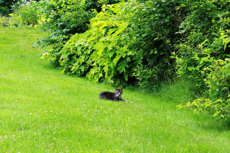 Keywords: nature green garden park grass meadow landscape summer spring cat animal lonely relax recovery