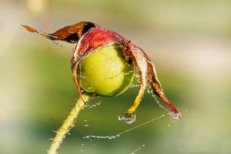 Keywords: nature plant autumn faded flower green leaf exotic bud blossom bloom close morgentau dew spider webs wild flower