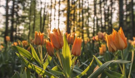 Keywords: nature plants flowers tulips outdoors park garden spring growth fresh organic life young care flora lush color orange season sunshine