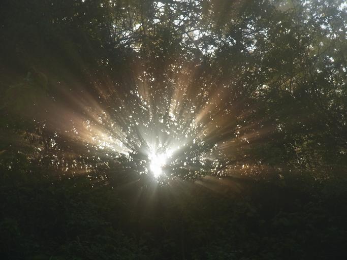 Keywords: nature sun sunbeam forest tree trees landscape mood