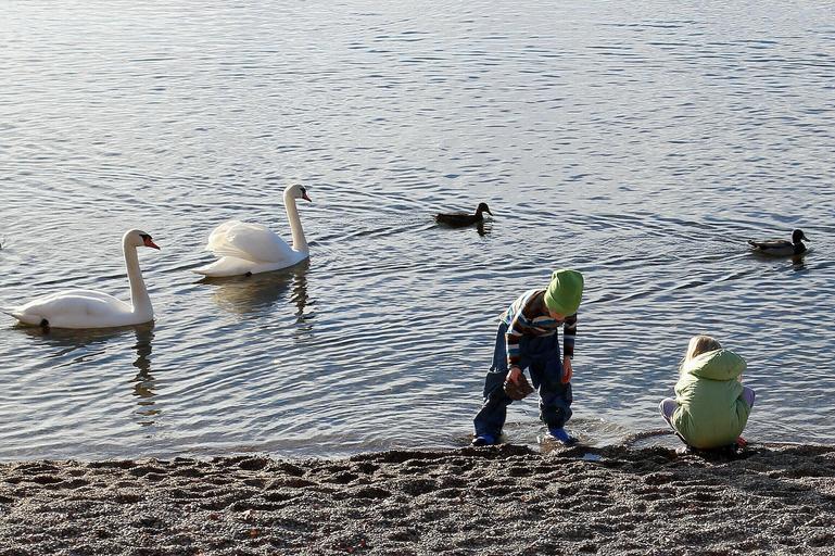 Keywords: nature water animals animal swan swans duck ducks waters children play build child
