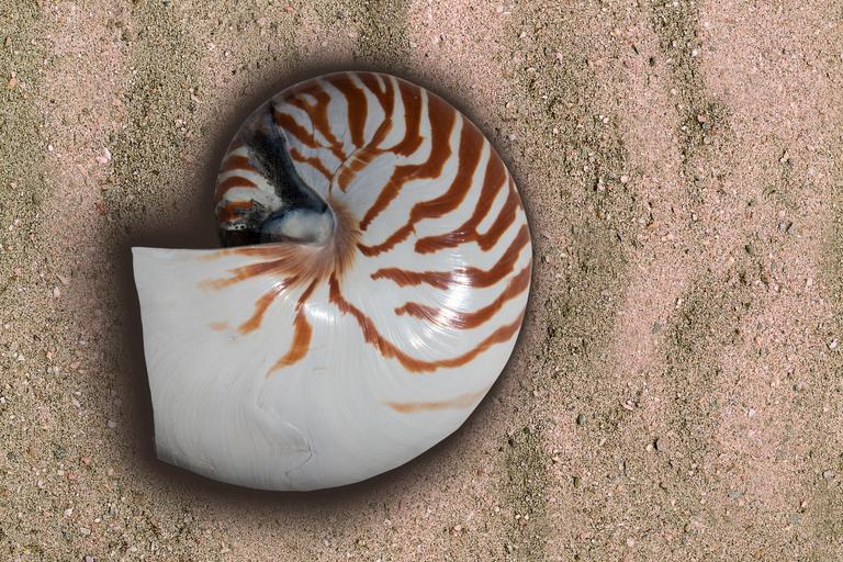 Keywords: nautilus cephalopods sea holiday memory housing shell animal living fossils decorative beach sand sand beach macro excerpt of the beach