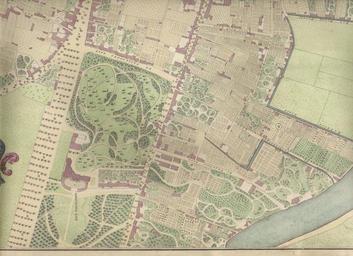 Keywords: Nautz1827.jpg Southern portion of Nautz 1829 map of Haarlem showing Welgelegen as it was in 1827 Map date 1829 Colored copper engraving by W C van Baarsel in Amsterdam Source Ferdinand Joseph Nautz 1785-1841 surveyor Nautz was a member of a group of surveyors hired in 1817 to map the Dutch towns in order serve as a basis for taxes The hand-colored and hand-drawn maps were created in 1822 by Nautz and his colleagues H C van Dooren and A van Diggelen They are in the possession of the National Archives For the town of Haarlem Nautz created a set of maps of Haarlem where not only ownership rights but also houses were drawn Quite popular these maps were reproduced by book sellers and sold at the time for 3 guilders to travelers as the first city-maps This set of maps belongs to the city of Haarlem and has been used as the basis for city planning as late as 1900 In the archive museum of Haarlem a model of the city is on show based on this map Scanned from 2002 reproduction of one of many copies of the 'Nautz of Haarlem' in possession of North Holland Archives Archiefdienst voor Kennemerland/Historische Museum Zuid-Kennemerland Haarlem PD-old Old maps of Haarlem Haarlemmerhout Ferdinand Joseph Nautz Frederikspark Haarlem Paviljoen Welgelegen |