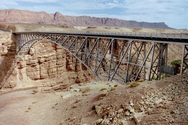 | Keywords: Navajobridge01.jpg Navajo Bridge crosses the Colorado River at Marble Canyon Arizona southwest of Page in northern Arizona United States Navajo Bridge überquert den Colorado River bei Page in Arizona Vereinigte Staaten own 1998-05-11 Nikater Own work all rights released Public domain Navajo Bridge 1995 Paria Plateau Vermilion Cliffs Navajo Bridge |