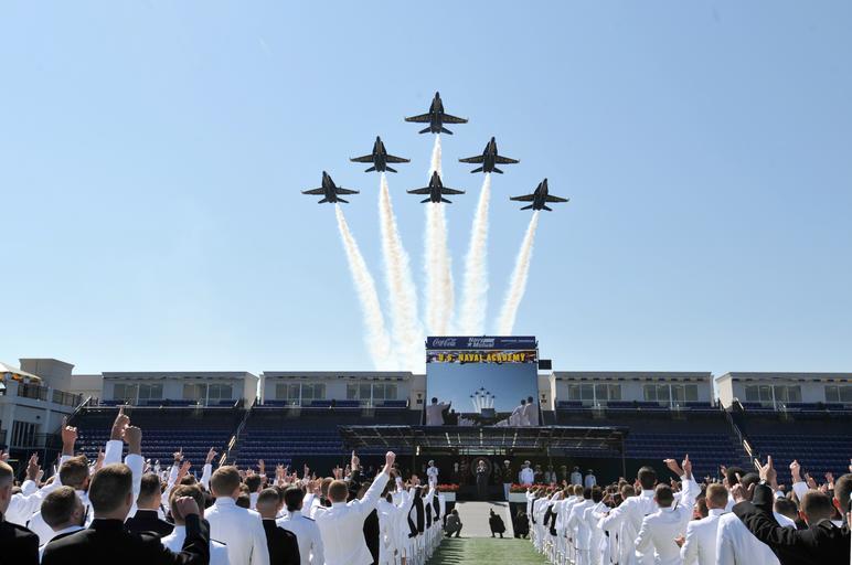 | Keywords: Naval Academy graduation 150522-N-ZZ999-578.jpg en 150522-N-ZZ999-578 ANNAPOLIS Md The U S Navy flight demonstration squadron the Blue Angels perform a flyover during a graduation and commissioning ceremony for the Naval Academy Class of 2015 This year ™s class graduated 1 070 men and women including 790 Navy ensigns and 264 Marine Corps second lieutenants 2015-05-22 May 22 2015 https //www dvidshub net/image/1951673 150522-N-ZZ999-578 2015-05-23 00 18 ANNAPOLIS MD US 4 PD-USGov-Military-Navy Blue Angels Images from DoD uploaded by Fæ |