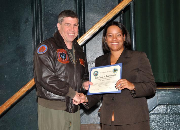 | Keywords: Naval Station Norfolk's observance of Woman's History Month 130322-N-XX999-009.jpg en Capt David A Culler Jr commanding officer of Naval Station NAVSTA Norfolk presents Dr Kanama Bivins Commander Navy Region Mid-Atlantic Regional Comptroller with a certificate of appreciation for speaking at the Women's History Month ceremony Mar 22 This year's Women's History Month theme is women inspiring innovation through imagination Celebrating Women in Science Technology Engineering and Mathematics U S Navy photo by Boatswain's Mate 2nd Class Marisa Almada 2013-03-22 Petty Officer 2nd Class Marisa Almada https //www dvidshub net/image/892683 130322-N-XX999-009 2013-03-22 14 15 NORFOLK VA US PD-USGov-Military-Navy Naval Station Norfolk Women's History Month Images from DoD uploaded by Fæ |