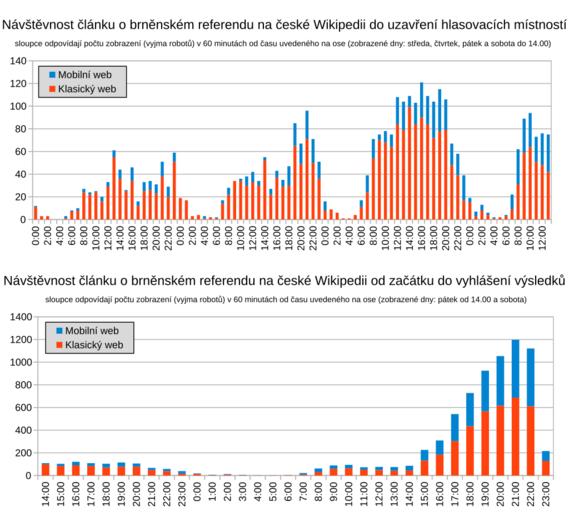 | Keywords: Návštěvnost článku o brněnském referendu 2016 na Wikipedii.svg cs Grafy znázorňují počet návštěv článku Referendum o poloze hlavního nádraží v Brně 2016 na české Wikipedii v jednotlivých hodinách okolo doby konání referenda 7 8 října Nahoře Návštěvnost článku o brněnském referendu na české Wikipedii do uzavření hlasovacích místností Dole Návštěvnost článku o brněnském referendu na české Wikipedii od začátku do vyhlášení výsledků 2016-10-09 own Marek Blahuš other versions cc-zero Brno main railway station referendum 2016 Wikipedia article traffic statistics |